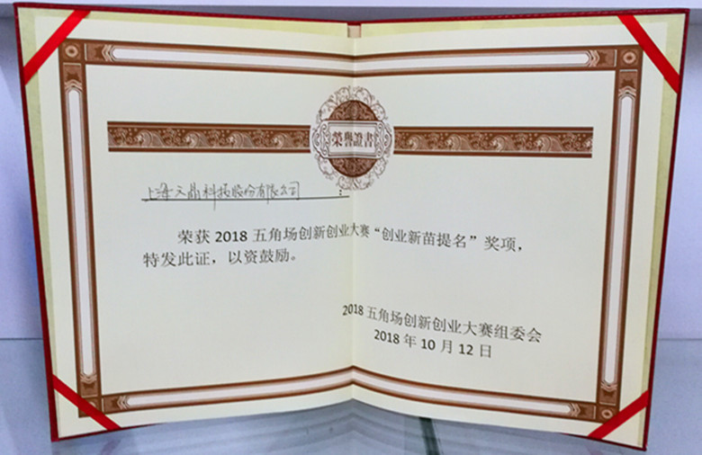 上海市六晶科技股份有限公司李邦懌同志,于2018年10月12日參與2018五角場(chǎng)創(chuàng)新創(chuàng)業(yè)大賽中再獲殊榮,榮獲創(chuàng)業(yè)新苗提名獎(jiǎng)項(xiàng)。